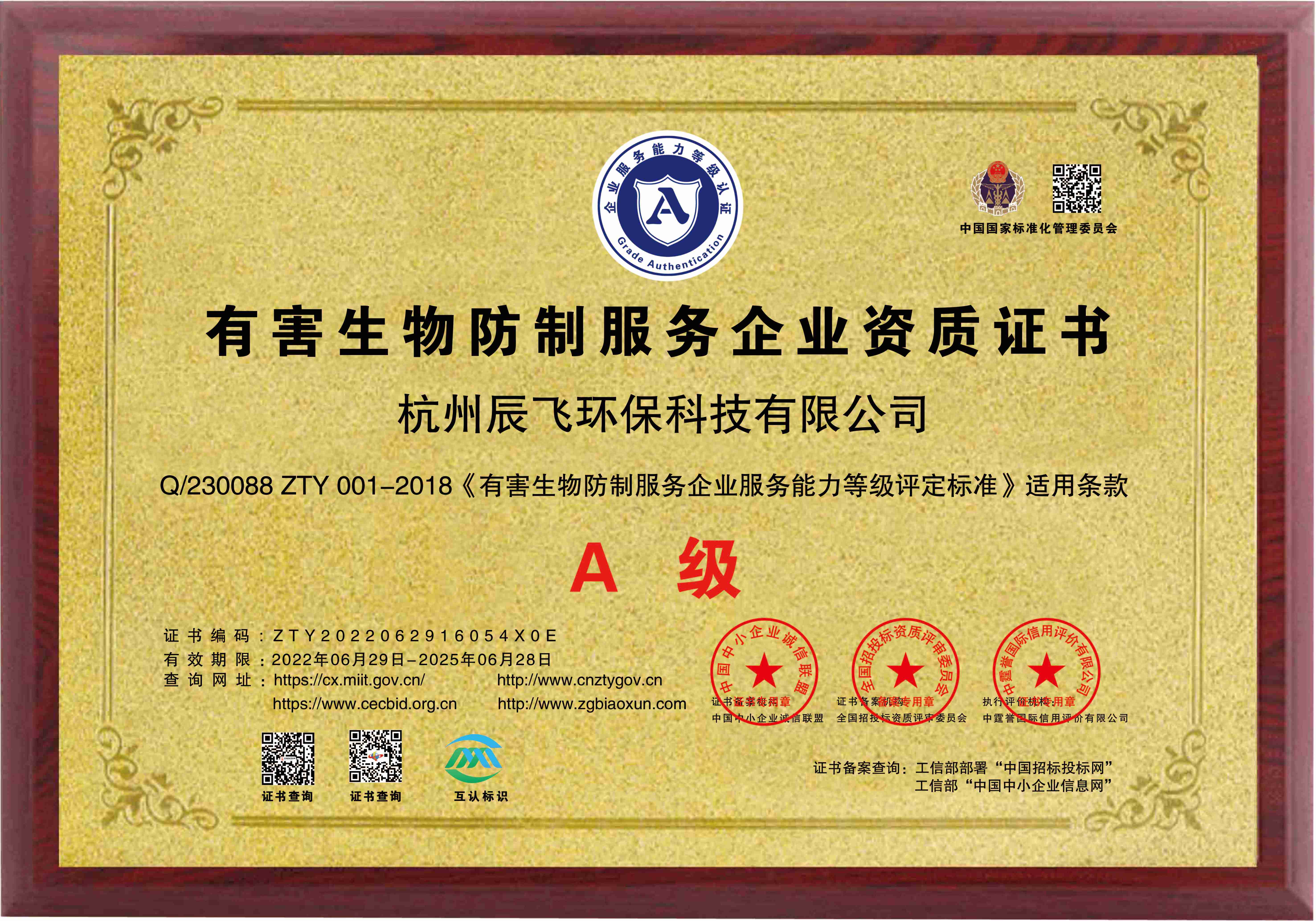 有害生物防制資質(zhì)A級(2025-2028)